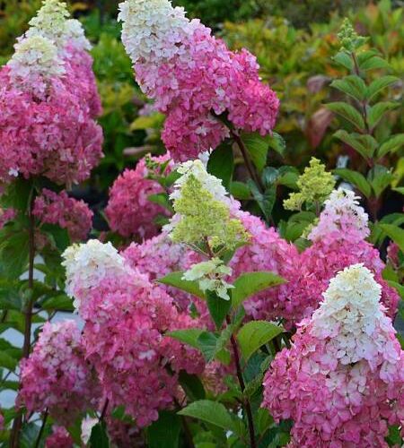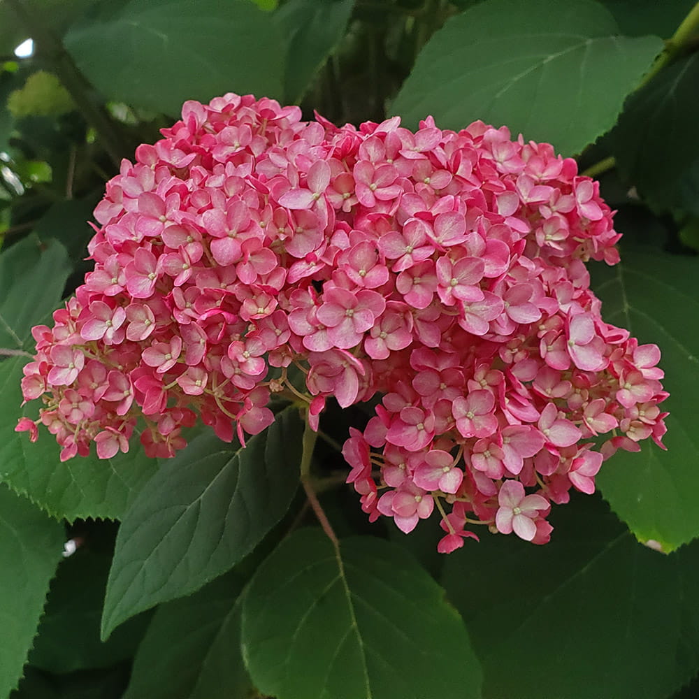 Grosses inflorescences rose vif très décoratives en début d’été sur des tiges fortes