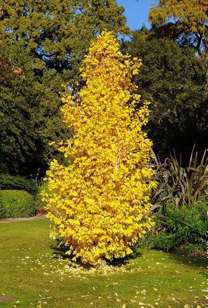 Feuillage caduc devenant jaune d’or en automne