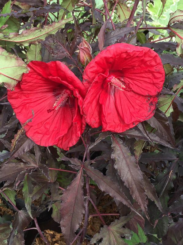 Grandes fleurs rouge sombre de 20 cm – Feuillage pourpre foncé durant tout l’été – Rusticité – 15ºC