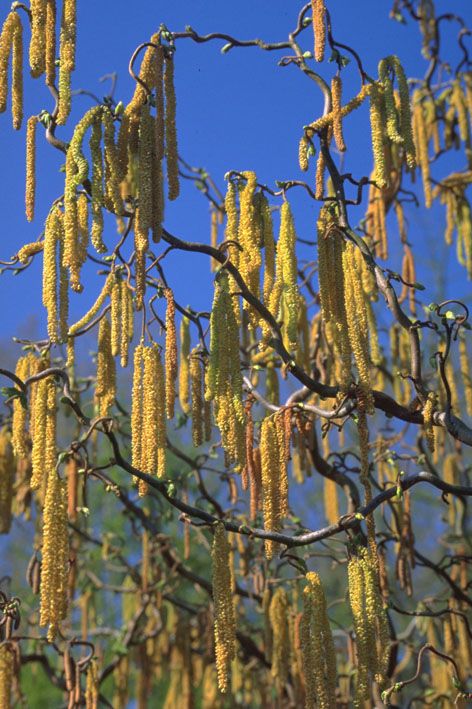 Appelé noisetier tortueux en raison de son port insolite, i branches sinueuses. En février-mars, ses rameaux nus se parent de chatons jaunes. Feuillage plus frisé et plus enroulé que celui du noisetier commun.