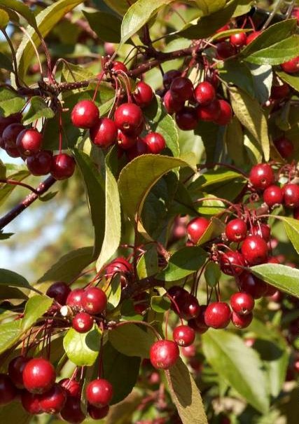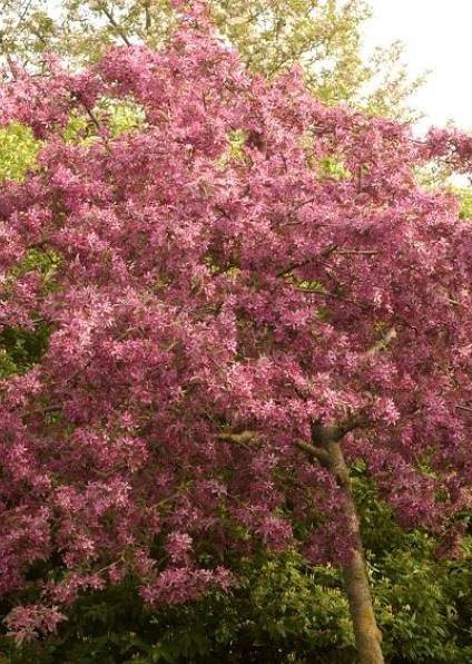 Pommier d’ornement à remarquables fleurs rouge pourpré en avril