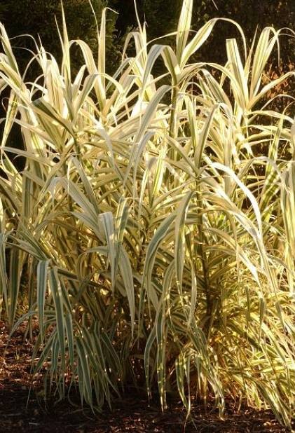 Canne de Provence – Grandes feuilles effilées, retombantes, vertes rayées blanc et vert pâle à violacé – Semi-persistant