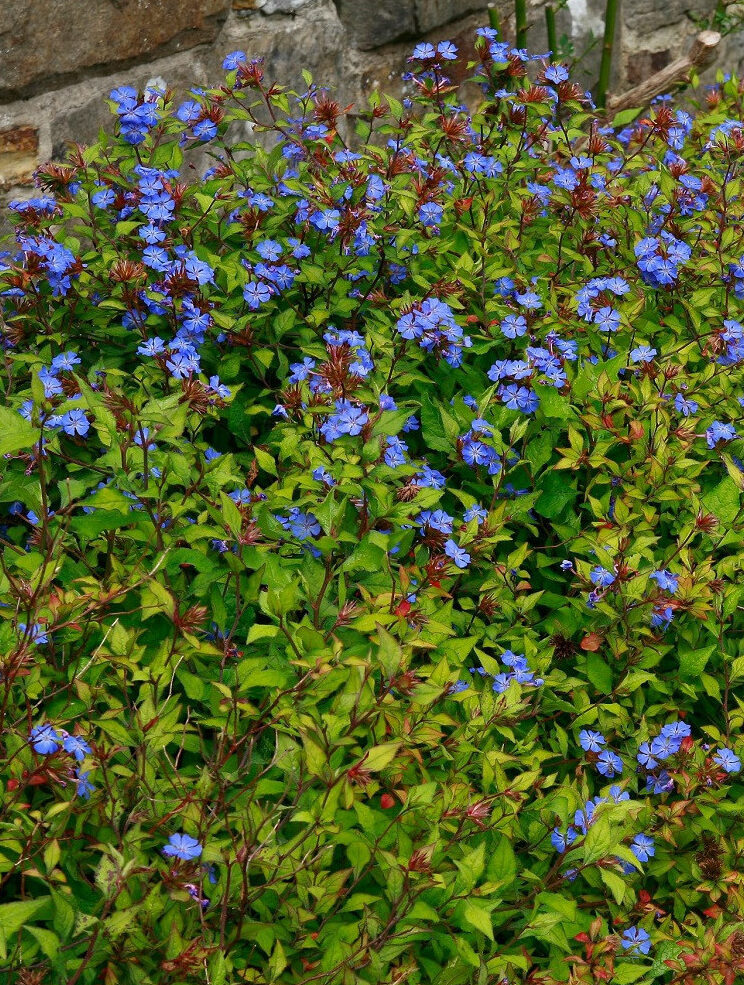 Feuillage vert caduc, fleurs bleu en sept/oct, rustique